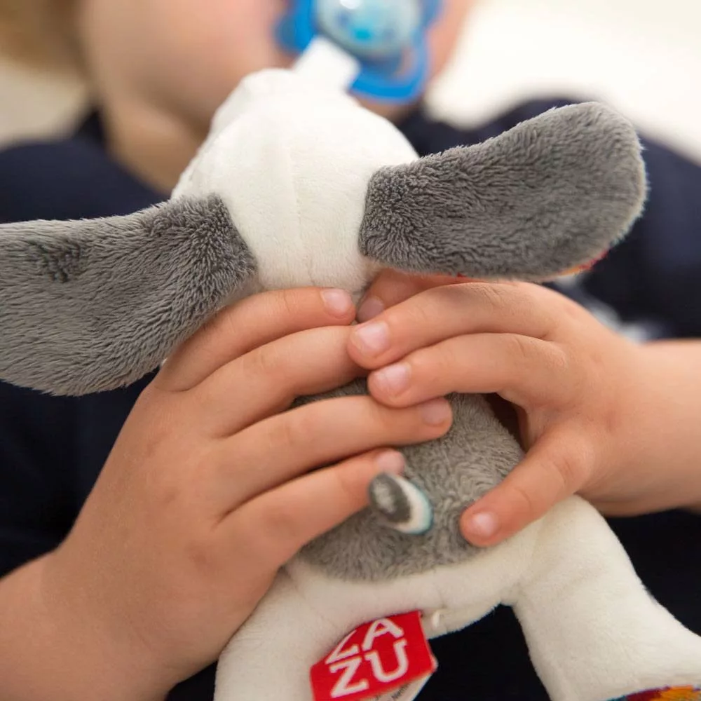 A kedves plüssállat nemcsak biztonságérzetet ad, hanem leköti a gyermek figyelmét is.